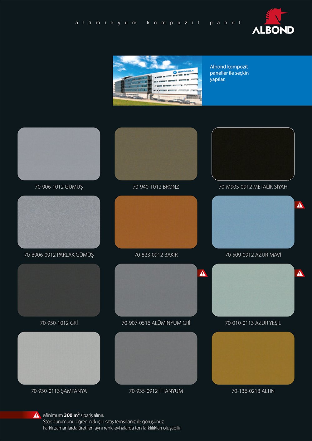 Albond 7000 Alüminyum Kompozit Panel Renk Kartelası