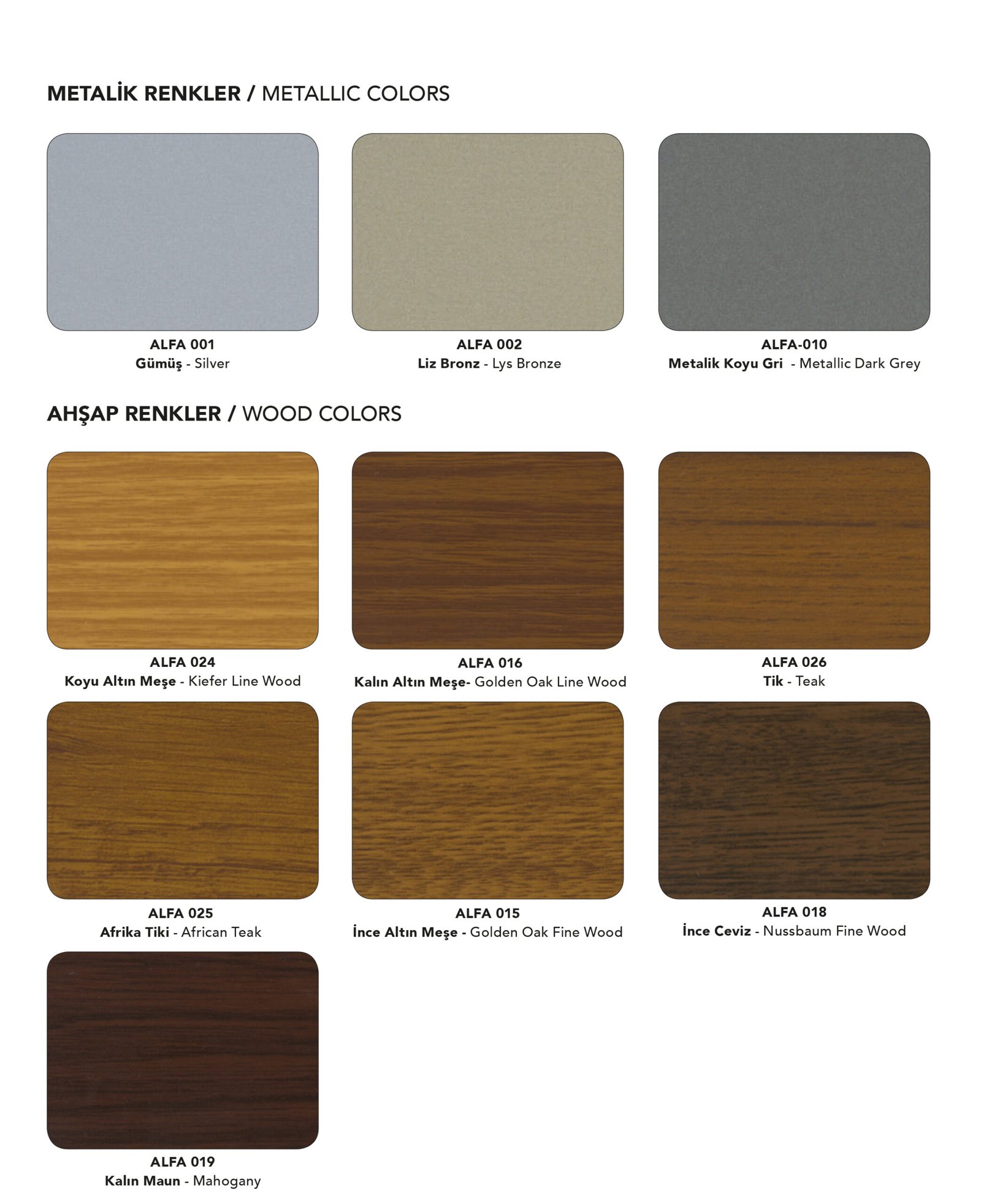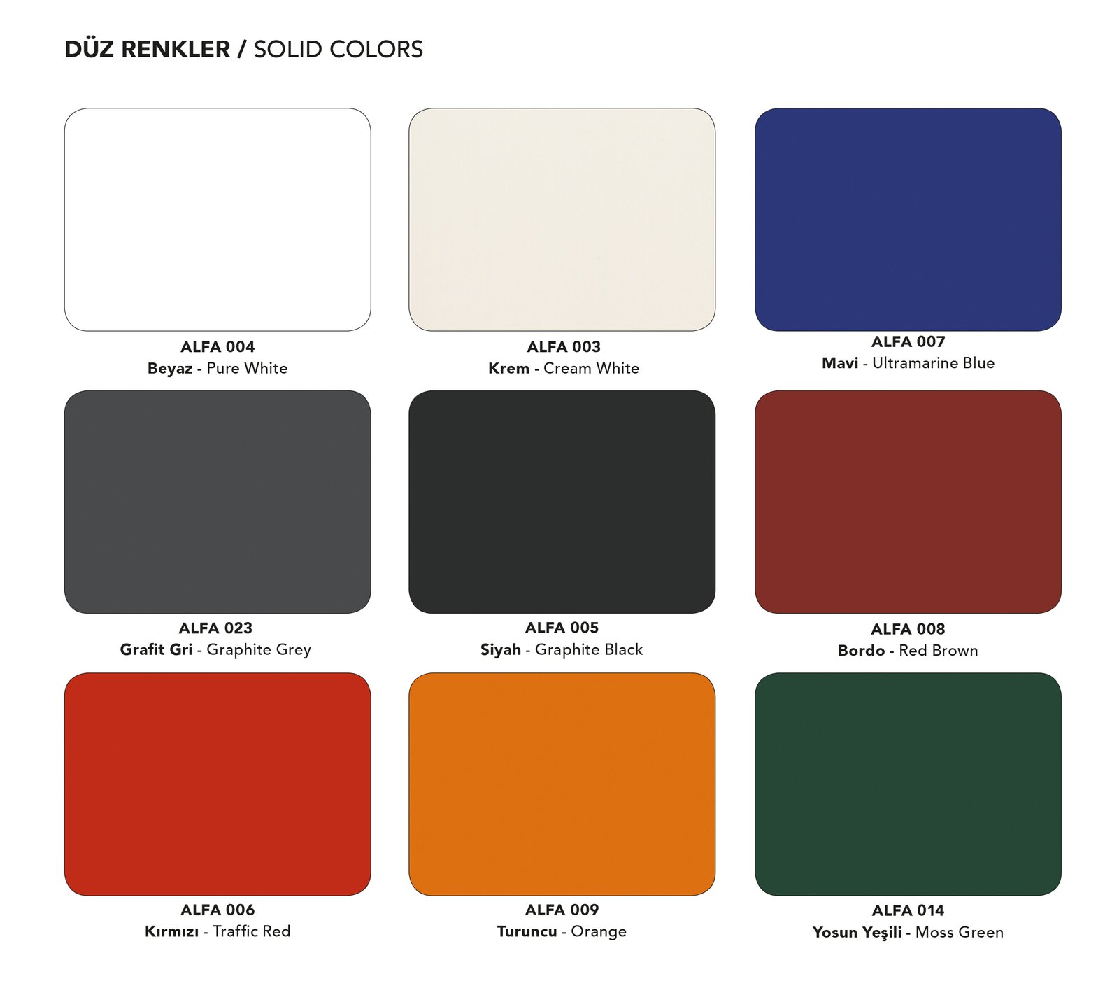Özel renk Alfabond Alüminyum Kompozit Panel için, dilediğiniz RAL ve PANTONE renk kartelalarından renk kodu seçebilirsiniz. Özel boyama sistemimiz sayesinde boyanan paneller derz açıldığında, kesim yapıldığında kesinlikle çatlama yapmaz.