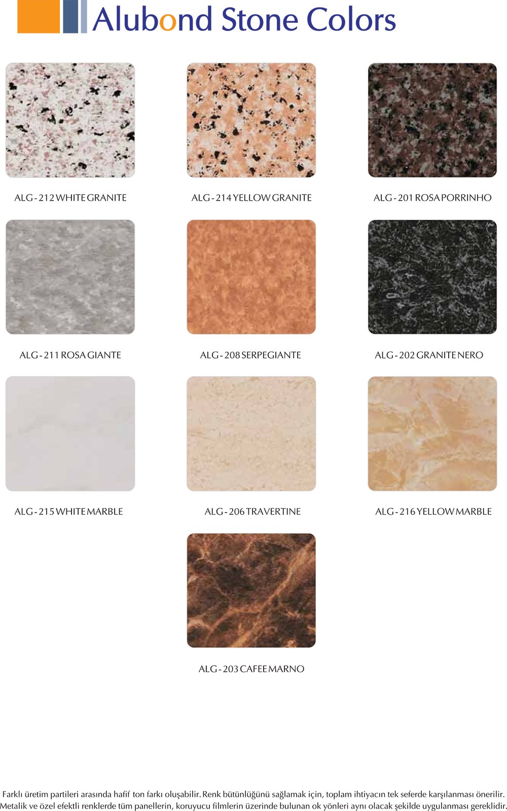 Alubond Alüminyum Kompozit Panel Renk Kartelası