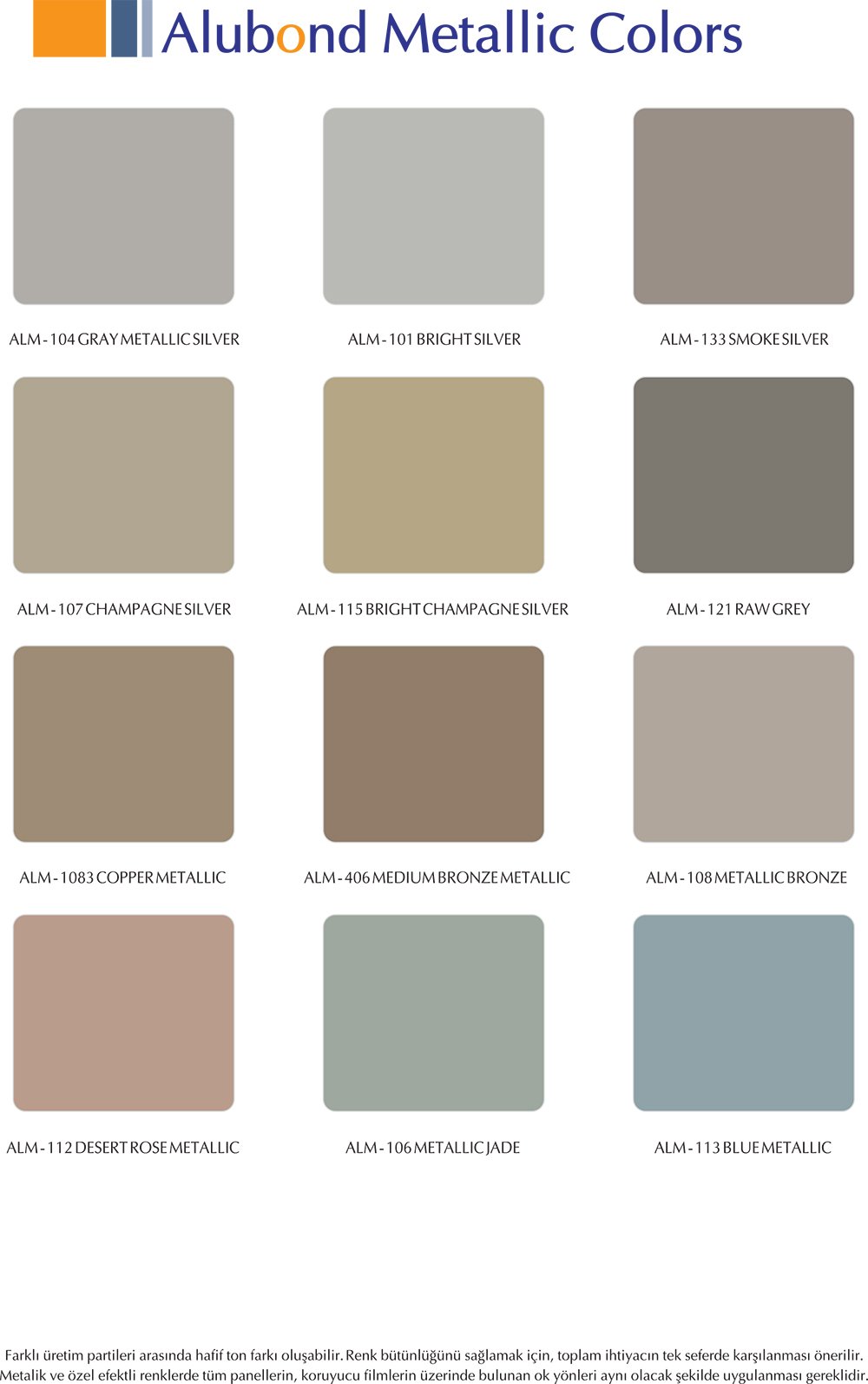 Fabrikaların renk kartelasında genellikle ana renkler bulunduğundan, özel renk ihtiyacı olan projelerinizde “Alubond Özel Renk Alüminyum Kompozit Panel Üretimi” hizmetimiz ile siz değerli müşterilerimize özel çözümler sunmaktayız.
