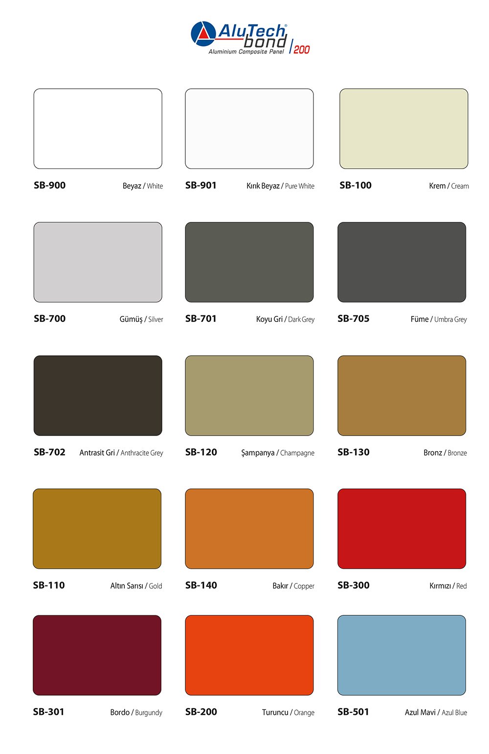 Alutechbond 200 Alüminyum Kompozit Panel Renk Kartelası