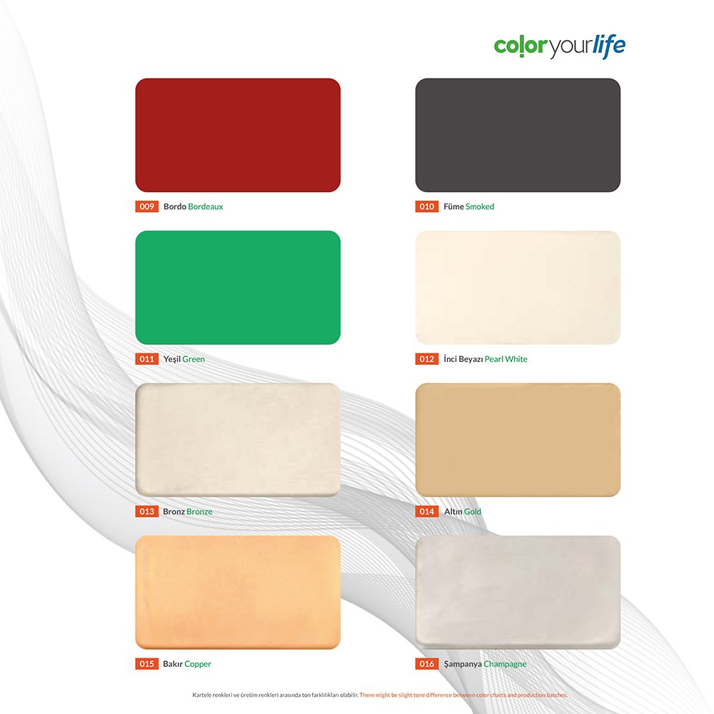 - Geniş renk seçeneği mevcuttur.
