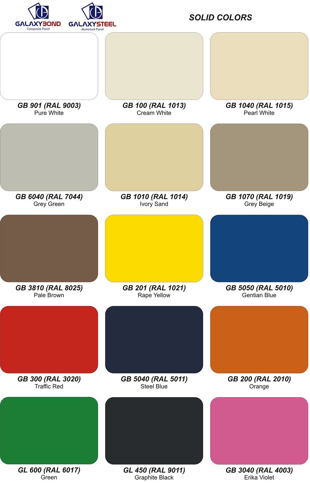 Galaxybond Alüminyum Kompozit Panel Renk Kartelası