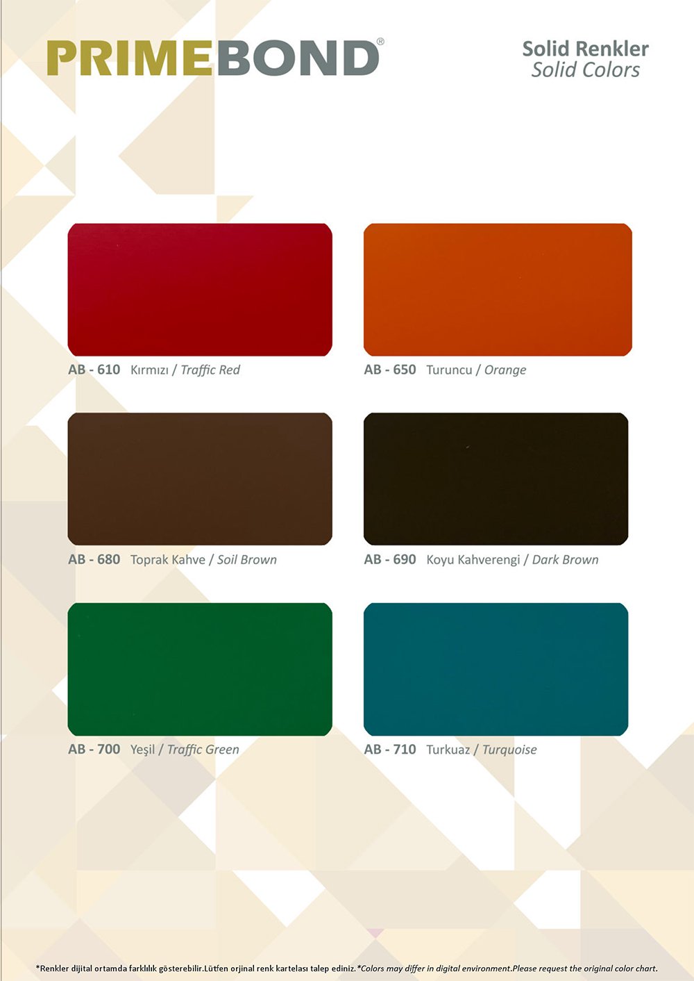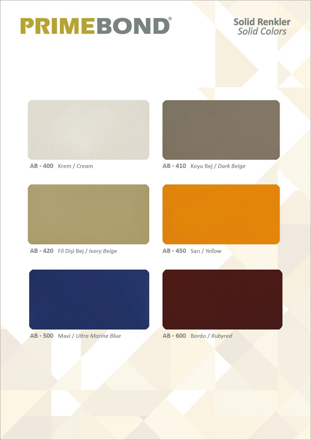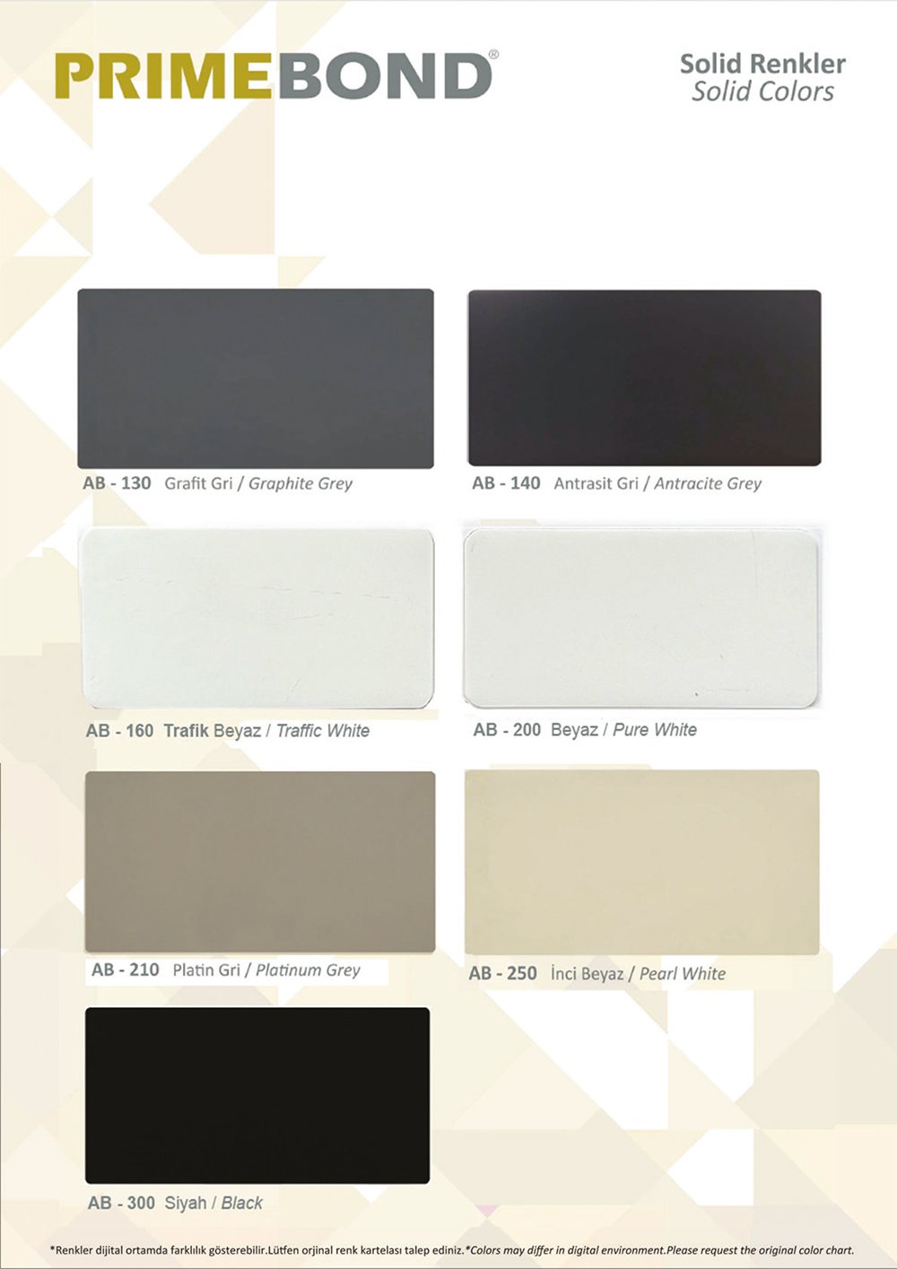 Primebond Alüminyum Kompozit Panel Renk Kartelası