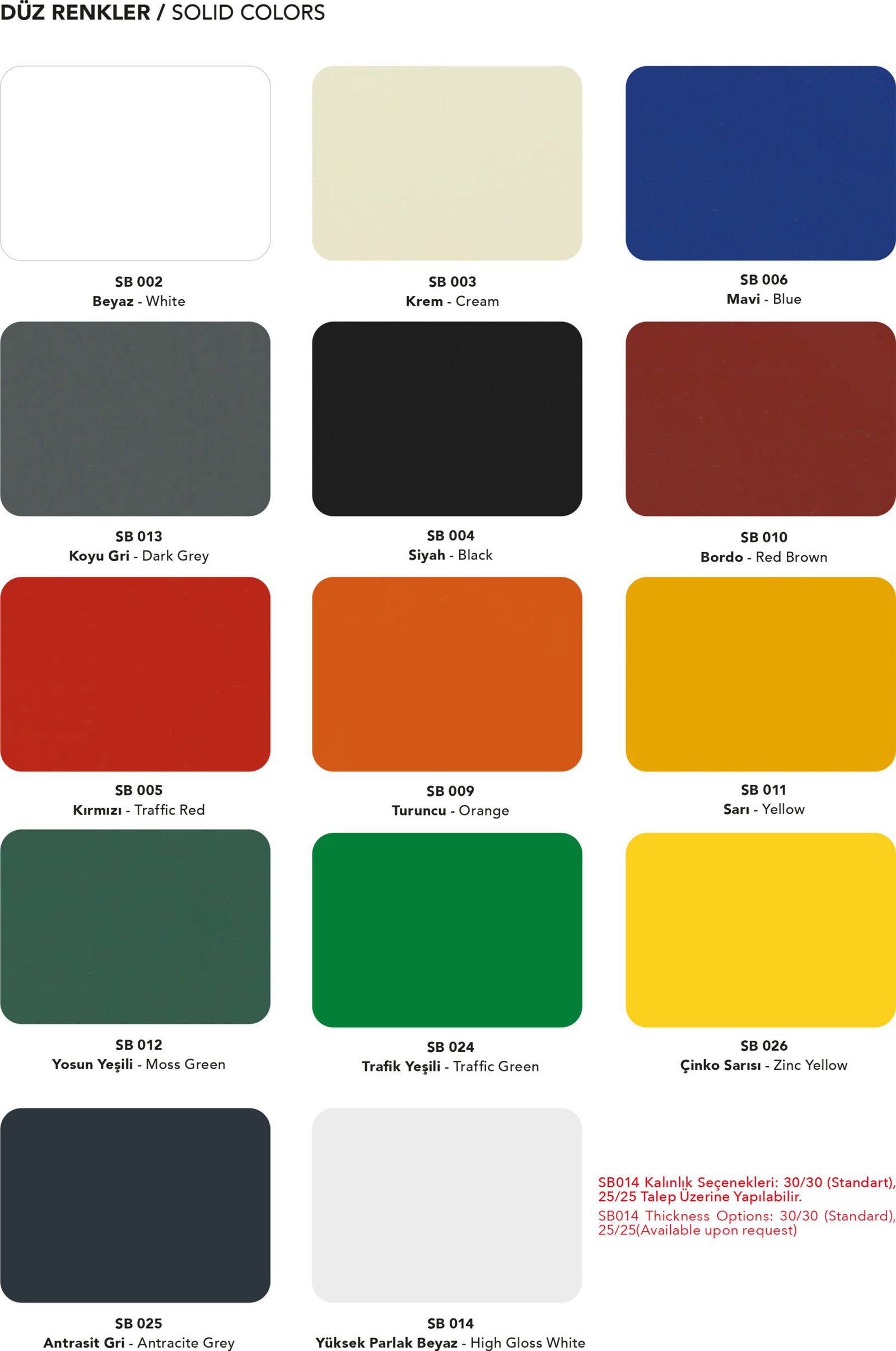 Signbond Alüminyum Kompozit Panel Renk Kartelası
